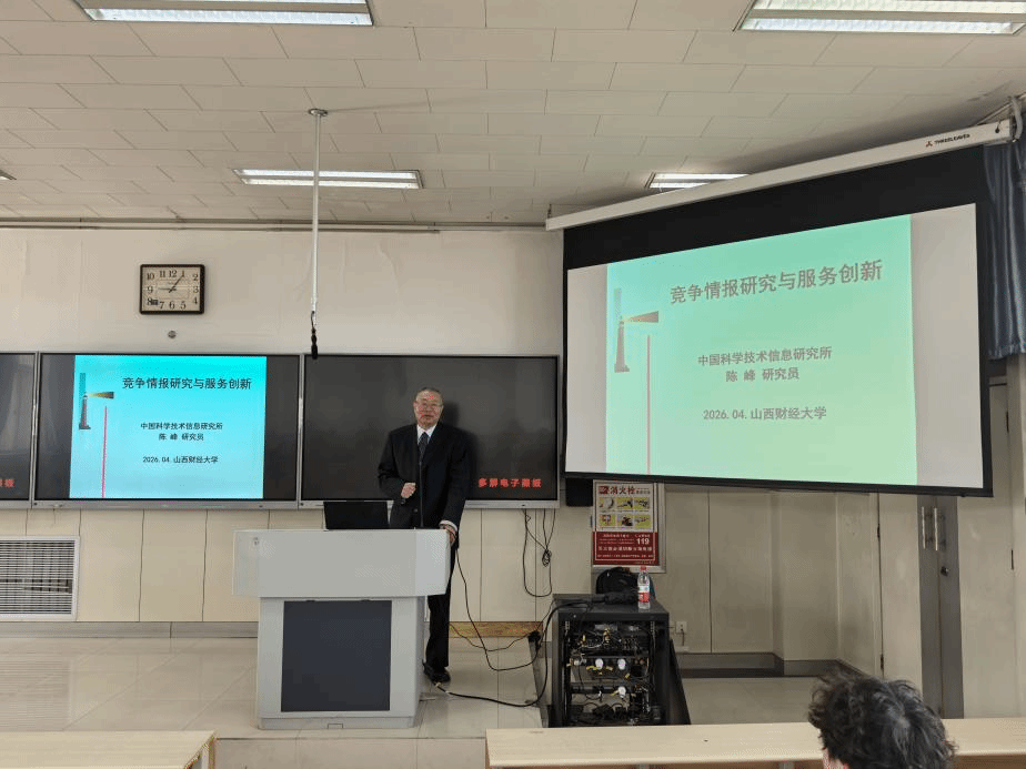 讲座中,陈峰围绕竞争情报的理论前沿、方法体系及其跨界应用展开系统阐释。他指出,在当前复杂多变的环境下,竞争情报不仅是支撑企业战略决策、赋能产业创新的重要工具,其底层的“敏捷感知”与“数据驱动”逻辑,同样为高校把握学术前沿、优化学科布局提供了全新的方法论。讲座重点探讨了商业竞争情报对高校学科建设的深刻启迪。结合多年从事产业分析与企业咨询的丰富经验,陈峰深刻剖析了商业领域中“态势感知”“标杆分析”“非对称竞争”等情报思维在学术治理中的借鉴价值。他强调,面对日益激烈的教育资源竞争,学科建设应打破“闭门造车”的局限,积极引入商业情报的“需求导向”理念;通过精准捕捉国家战略需求与行业迭代趋势,实施错位发展,从而在凝练学科特色、防范发展风险、提升核心竞争力等方面实现破局。此外,陈峰还结合具体案例,就数字时代师生如何培养竞争情报服务创新能力提出了针对性建议,为晦涩的理论提供了直观的落脚点。